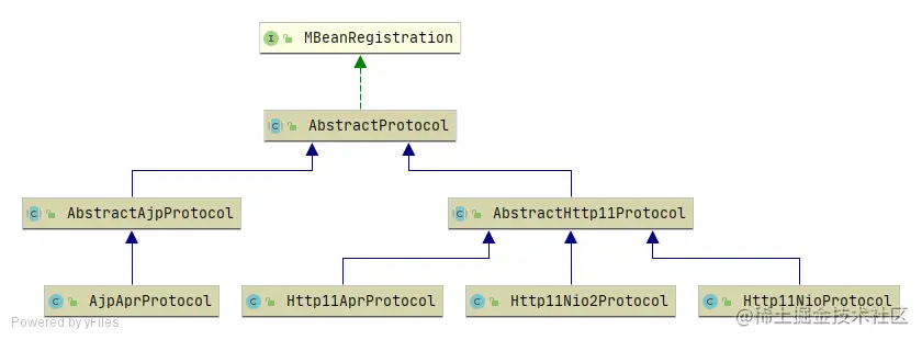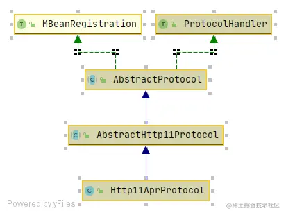 看下 org.apache.coyote.http11.Http11AprProtocol 和 org.apache.coyote.ajp.AjpAprProtocol 继承关系图: