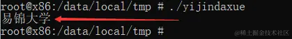 输入“./目标文件名称”回车运行这个文件,然后就可以看到在cmd命令里面输出“易锦大学”这样一个字符串,这就代表可执行程序编写成功,如下图所示。