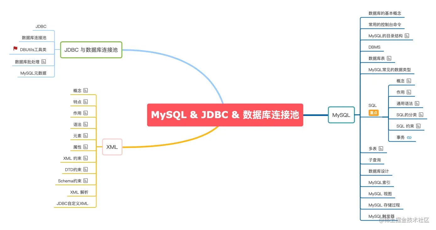 学习笔记:MySQL、JDBC 与数据库连接池 草率了 2020-09-27 338 阅读1分钟 文章内容输出来源:拉勾教育大数据高薪训练营 思维导图概览 详细可以戳一戳 pan.wps.cn/l/st4fce6cg… 扩展知识 🔗 《MySQL :事务与隔离级别,以及悲观锁和乐观锁》