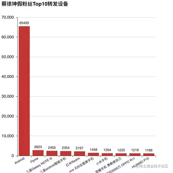 在假粉丝使用的Top10转发设备中,Android高居榜首,这也再次证明了这些粉丝是假粉丝。