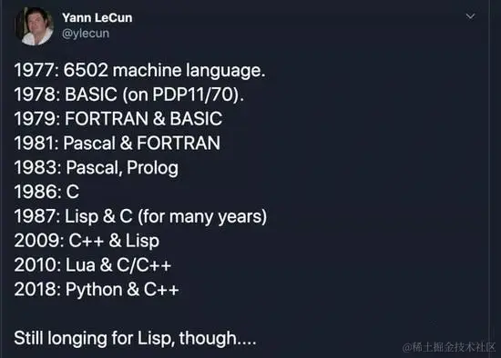 这也就不难理解Yann LeCun如此钟情于C、C++了。