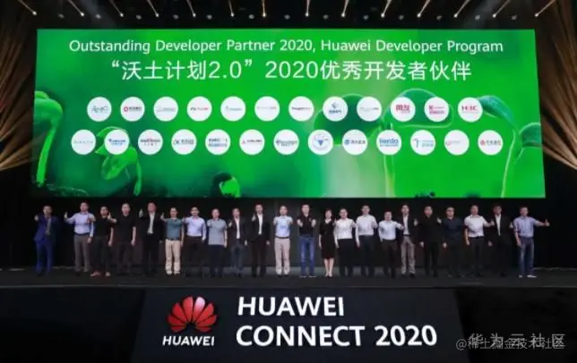 ▲20家“沃土计划2.0”2020年度优秀开发者伙伴现场揭晓