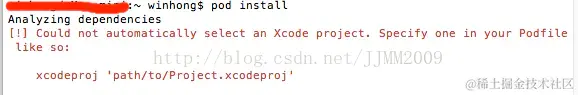 - 注意,这里有个小问题,如果刚刚你不是输入 pod install,会发现类库导入不成功,并且终端出现下面提示: