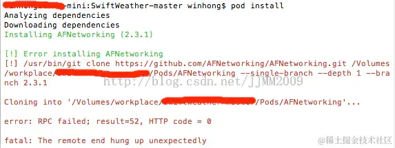 [!] /usr/bin/Gitclone 'https://github.com/CocoaPods/Specs.git' master --depth=1