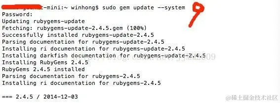 首先更新gem到最新版本,在终端中输入: