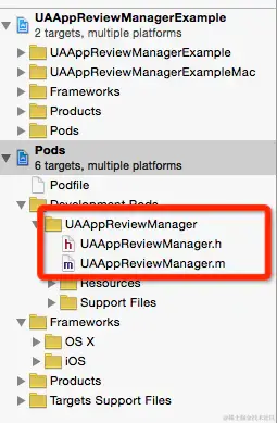 下面,以代码 UAAppReviewManager 为例来说明如何正确编译运行一个包含CocoPods类库的项目。