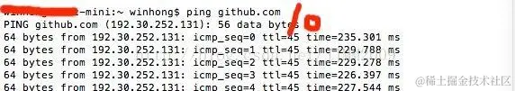 - 然后检查是否可以ping通github,在终端中输入: