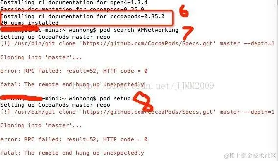 - 这说明CocoaPods还不能正常使用,需要更新pod,下载它的一些依赖包;在终端中输入: