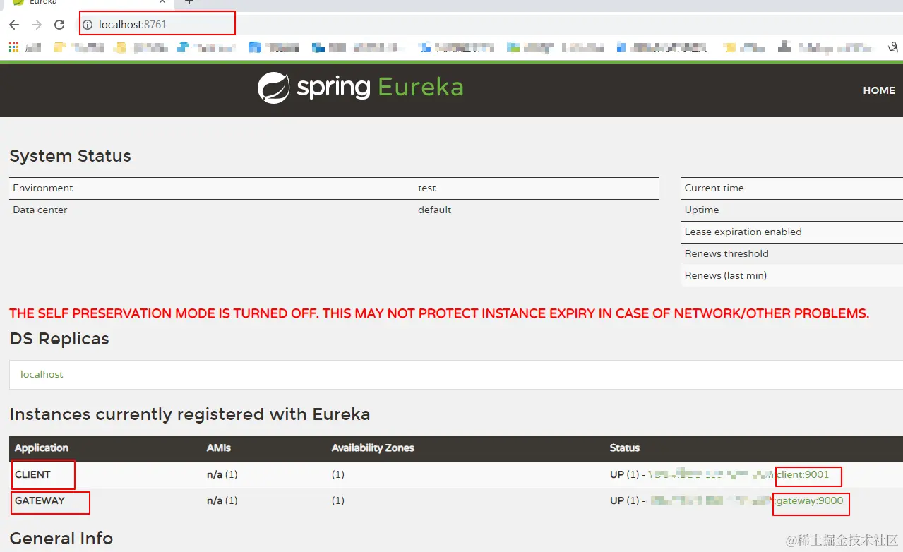 主要就一个地址:http://localhost:8761/eureka/,这个是注册中心地址。