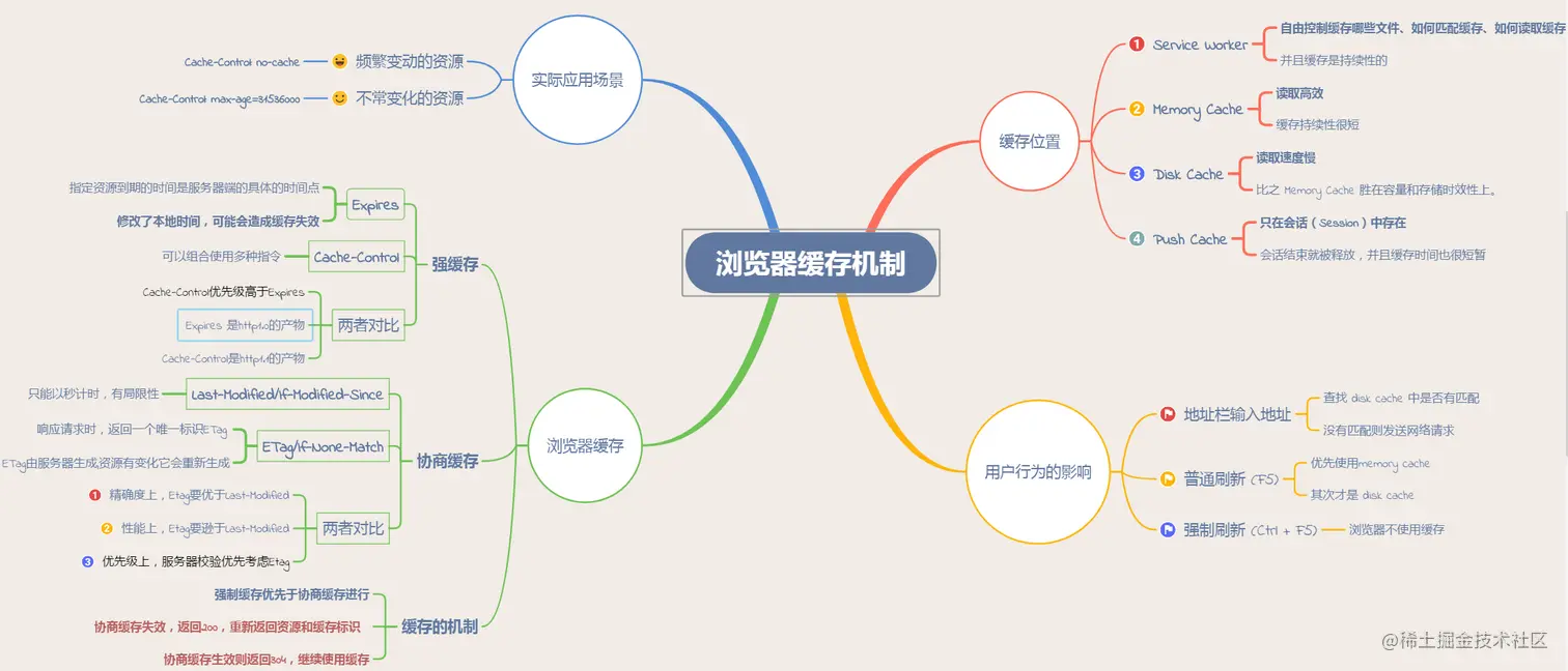 - 很多时候,大家倾向于将浏览器缓存简单地理解为“HTTP 缓存”。但事实上,浏览器缓存机制有四个方面,它们按照获取资源时请求的优先级依次排列如下: