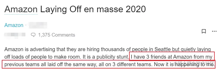 对于宽进宽出的亚麻来说,这种现象很常见,比如blind上最近就有人吐槽说,自己三位在亚麻的朋友都遭遇过PUA式考核,那段期间疯狂被manager否定,无论做什么都是徒劳,最后只能被迫无奈离职。