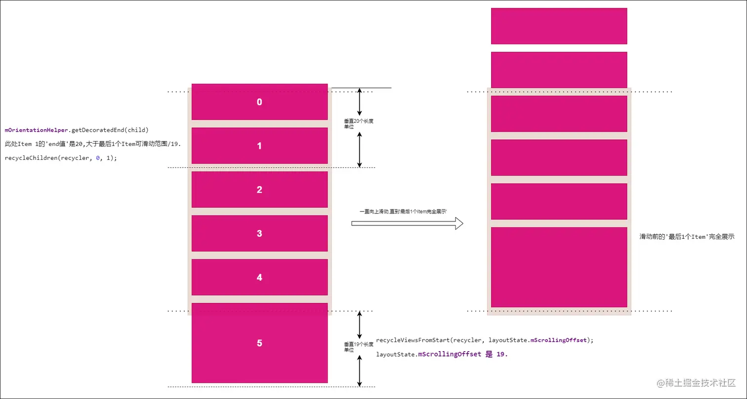 - LinearLayoutManager中滑动触发的列表项回收,回收哪些列表项 没想明白,看代码好像没有移出屏幕也会被回收?
