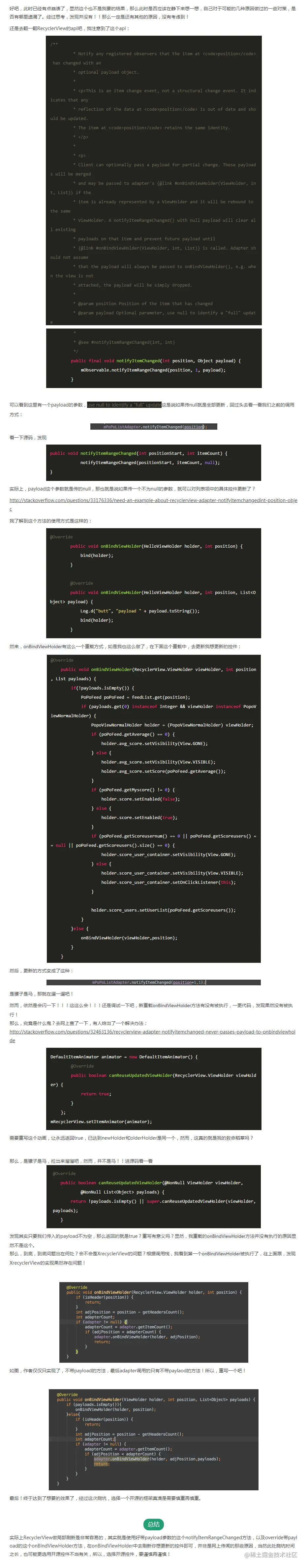 * 1:调用notifyItemChanged时候,传入payload,不为null即可