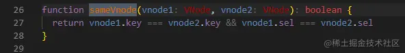 sameVnode函数用来进行判断是否是同一个vnode元素。