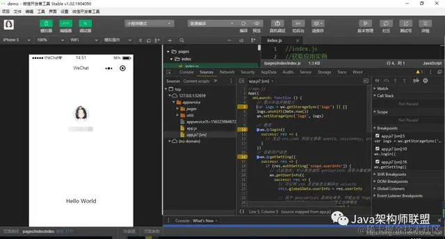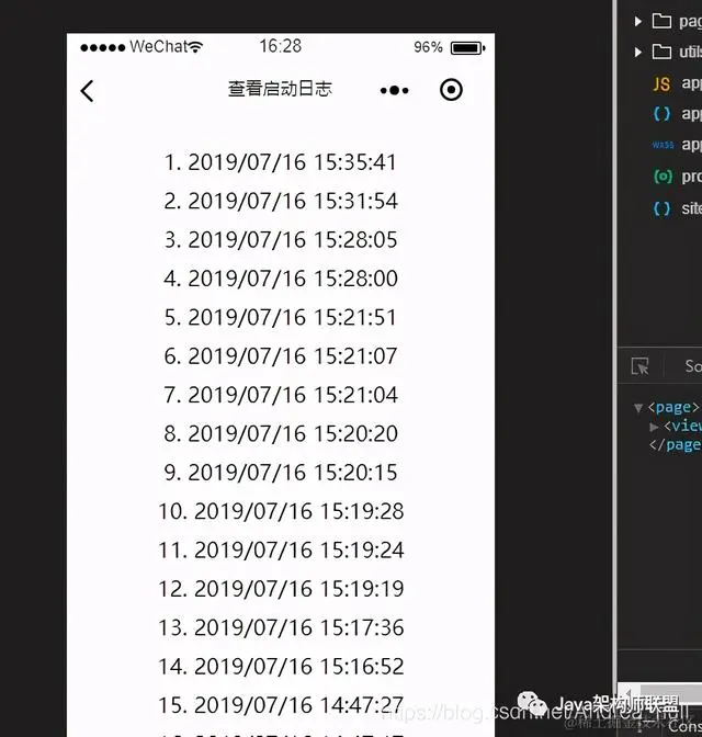 生成HelloWorld小程序之后点击它的主页面进入一个子页面可以查看启动的日志信息。