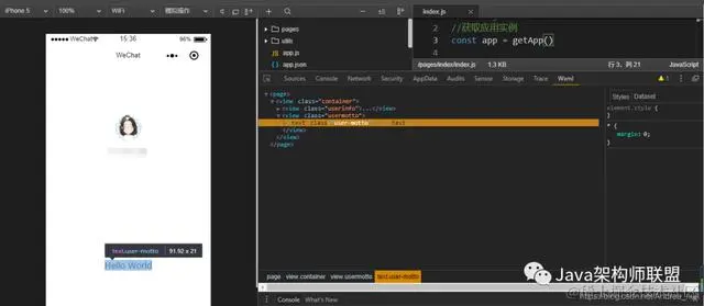 方式二(静态样式):写wxss文件–在标签上加入一个class属性,通过class选择器写css样式。wxss文件不需要单独去引用。因为注册的是以某名字为名名的所有文件。