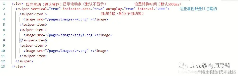 swipper不决定轮播的是什么内容,它只是一个容器。swipper-item里面放什么内容就轮播什么内容。