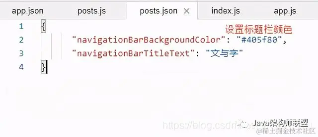 设置导航栏背景色: 在app.json中有window配置项 用于设置小程序的标题、状态栏、导航条、窗口背景色。 其中navigationBarBackgroundColor用来设置导航栏背景色。