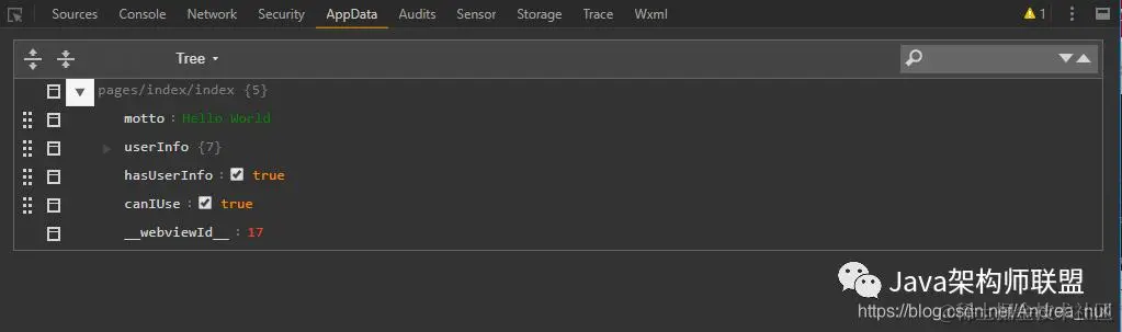 小程序在这里实现的数据绑定是单向数据绑定 也就是说,数据可以从脚本文件向wxml文件传递的时候可直接赋值,但是如果数据被wxml文件所改变,脚本文件中的数据不会发生变化。如果要通过wxml改变脚本文件中的数据,则需要采取事件传递的形式。