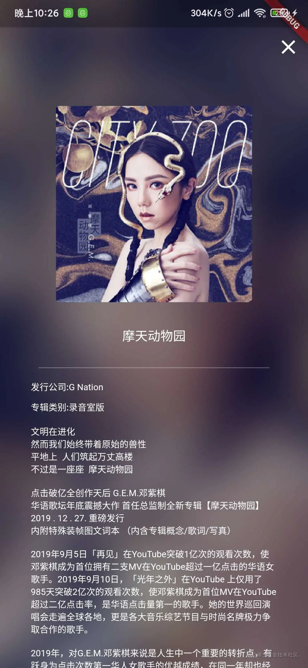 一块是Top,Top组件需要传入歌单或专辑的详细数据,展示缩略图,标题,作者,以及其他相关数据,点击缩略图还可以弹出歌单专辑描述。