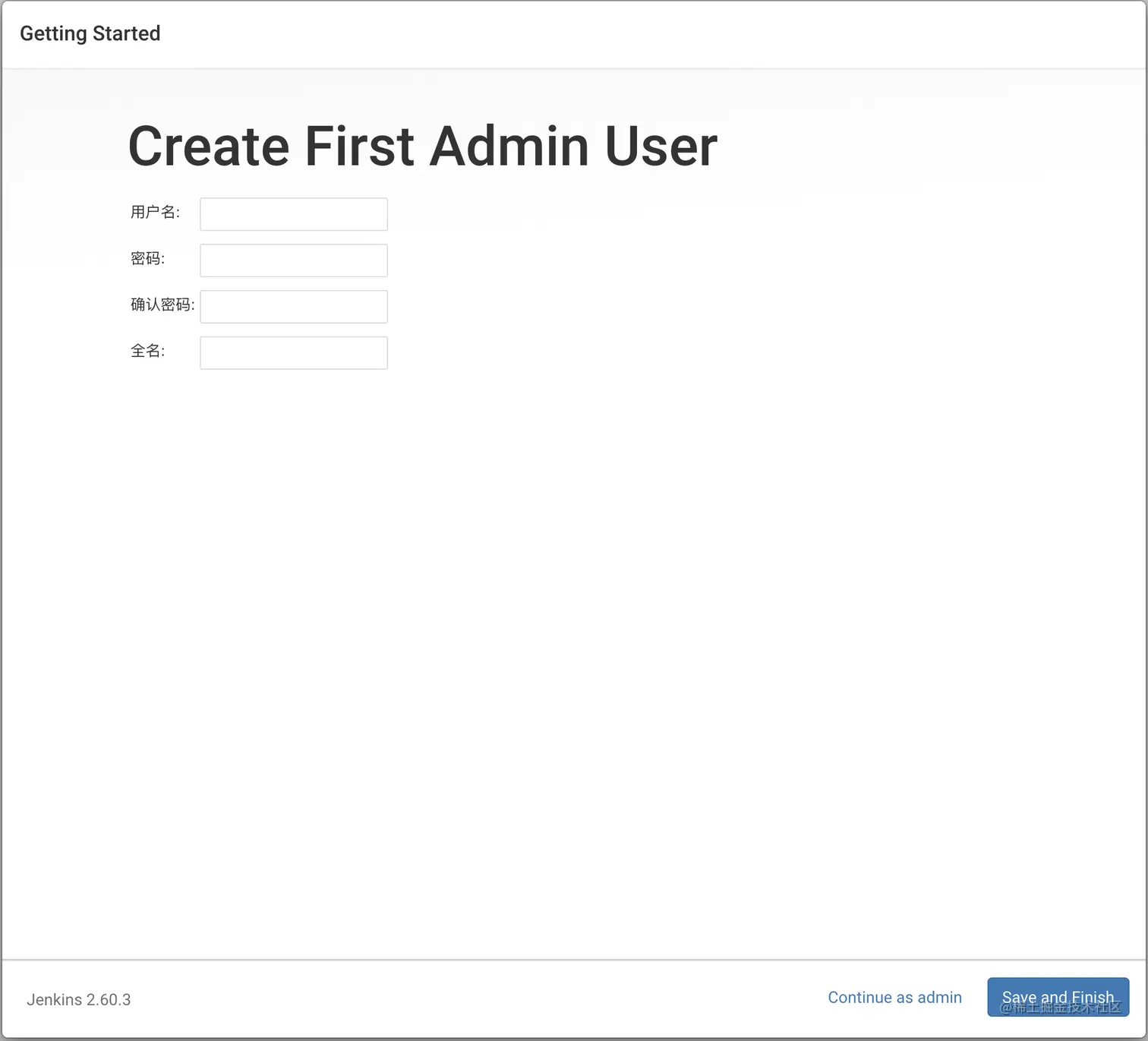 安装完插件后,会跳转到 admin 用户创建页面,按照页面提示完成即可。