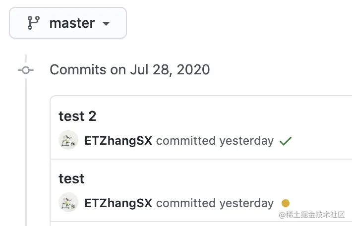 构建完成可以在 GitHub 上查看对应 commit 的构建状态。