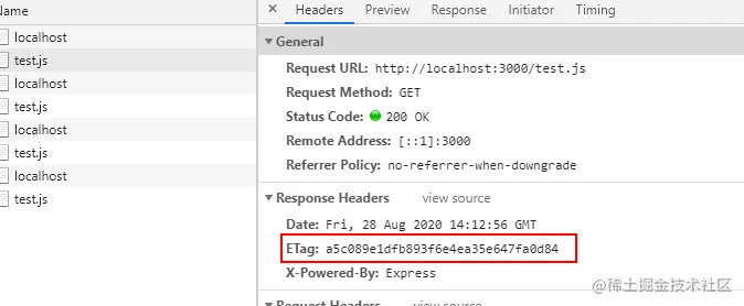 同样第一次请求后再次请求,就可以看到是命中协商缓存了。