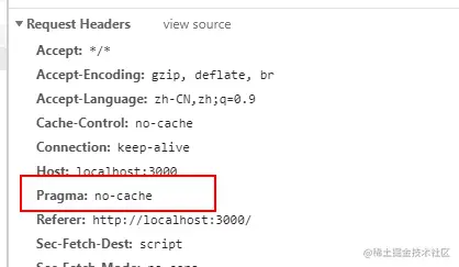 一般我们现在就不会用它了,如果想见到Pragma的话,在 Chrome 的 devtools 中启用 disable cache 时或者按 Ctrl + F5强制刷新,就会在请求的 Request Header 上看到。