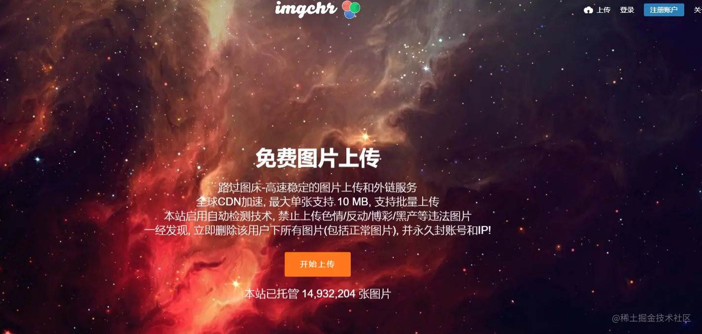 简介:支持免注册上传图片,永久存储,支持HTTPS加密访问和调用图片,提供多种图片链接格式,成立于2011年