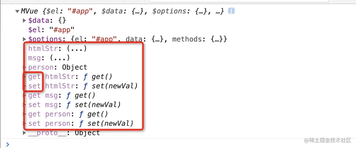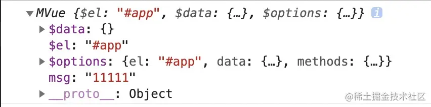 //lev vm = new MVue() 将整个实例赋值给vm,控制台输入vm可拿到整个实例