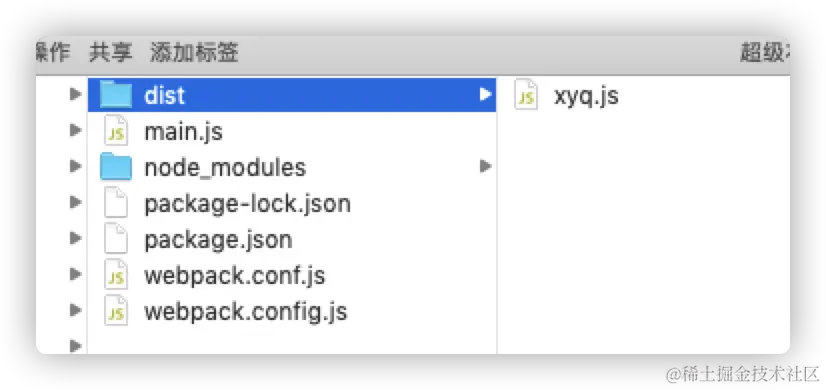 运行打包命令后则文件夹内会多出一个 dist 文件夹,这个就是打包之后得到的文件: