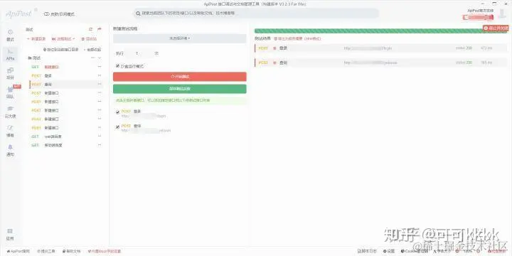 我们已经设置好了登录接口和查询接口,只需要打开apipost中的流程测试然后把登录和查询添加进去运行就可以了。