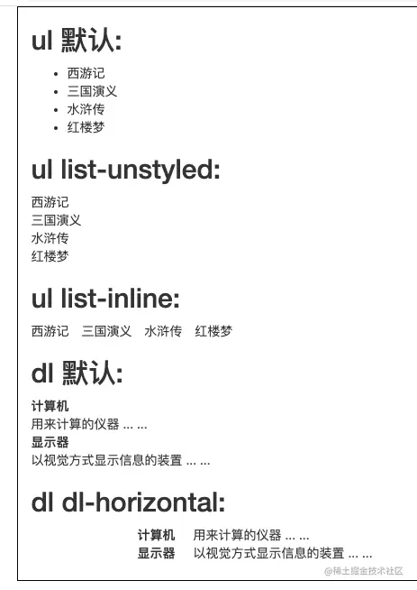 .dl-horizontal: 给定义列表来使用将定义标题与定义描述信息排列在同一行将dt标记与dd标记里面的内容排列在同一行