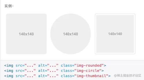 - .img-thumbnail:圆角边框的图片。