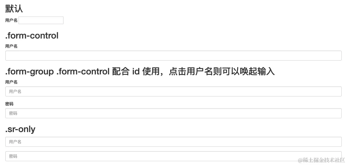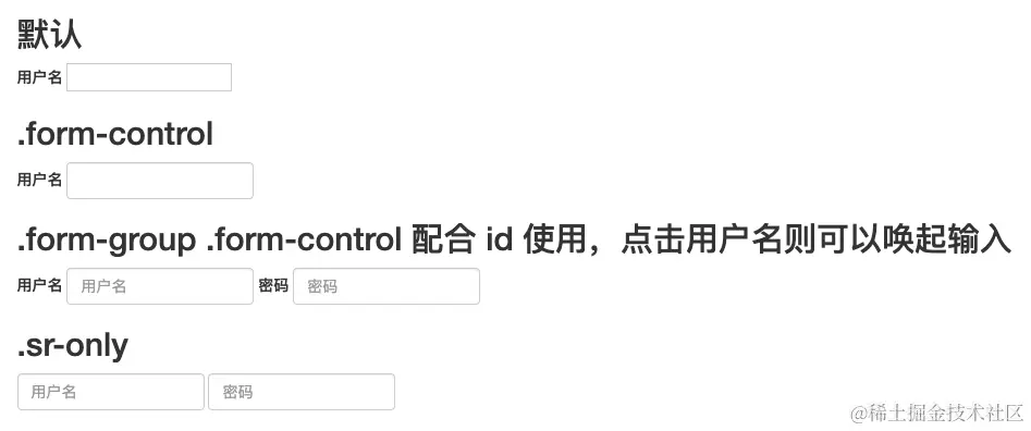 <h2>.form-group .form-control 配合 id 使用,点击用户名则可以唤起输入</h2>