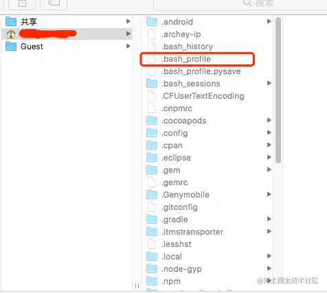 - 如果没有 .bash_profile 则使用命令行自行添加:(有文件的跳过)