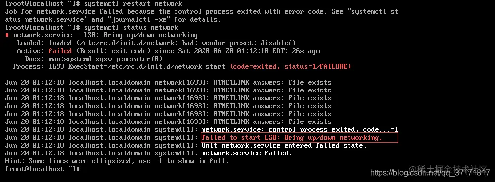 遇到的问题:Failed to start LSB: Bring up/down networking.