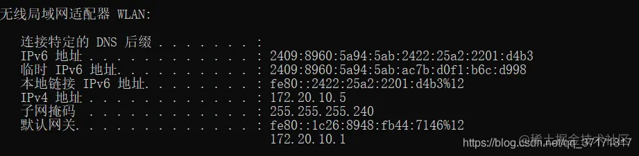 物理机IP配置,通过ipconfig查询: