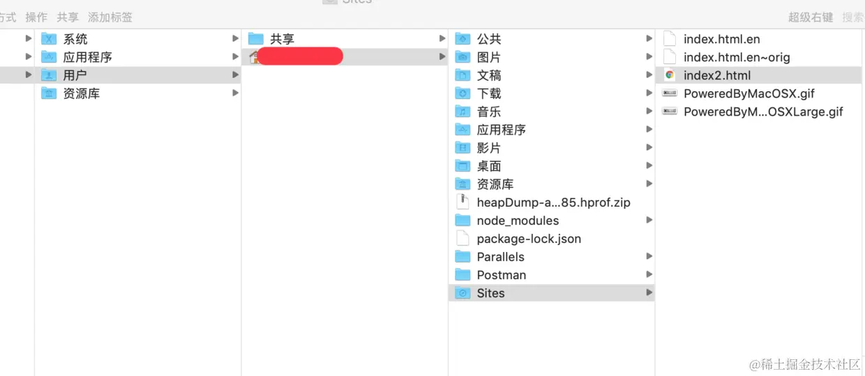 /Users/电脑名字下创建文件夹Sites作为存放本地资源的根目录。(直接用/Users/xxxx根目录的原因:为了避免在Desktop、Documents等目录下出现的子文件夹需要逐级授权问题)