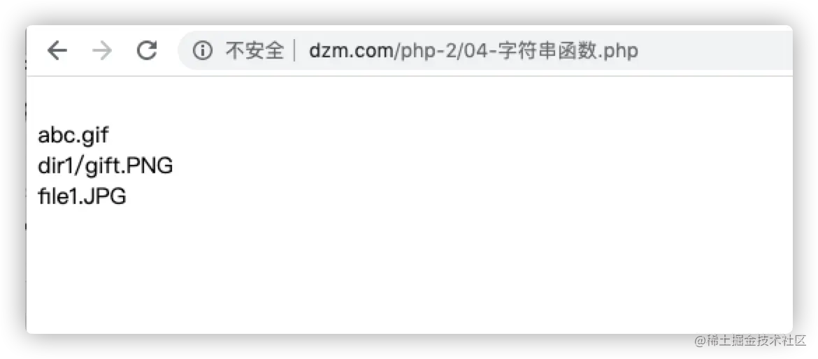 $files = array('abc.gif', '123.txt', 'dir1/gift.PNG', 'file1.JPG', 'gif动画制作教程.doc');