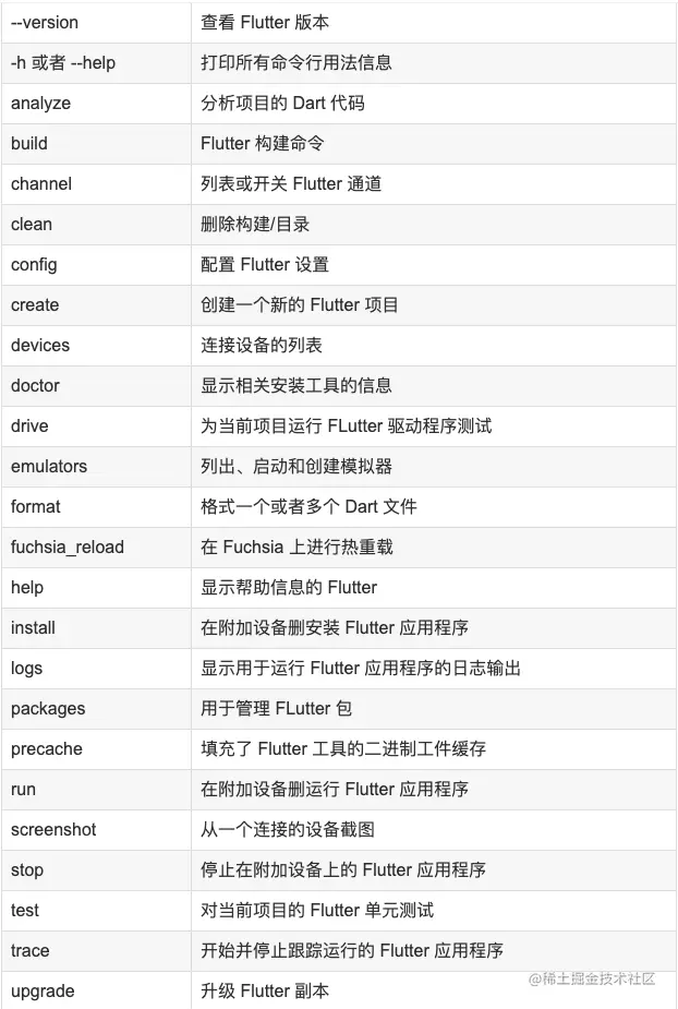显示所有命令(可以命令行创建Flutter项目之类的)