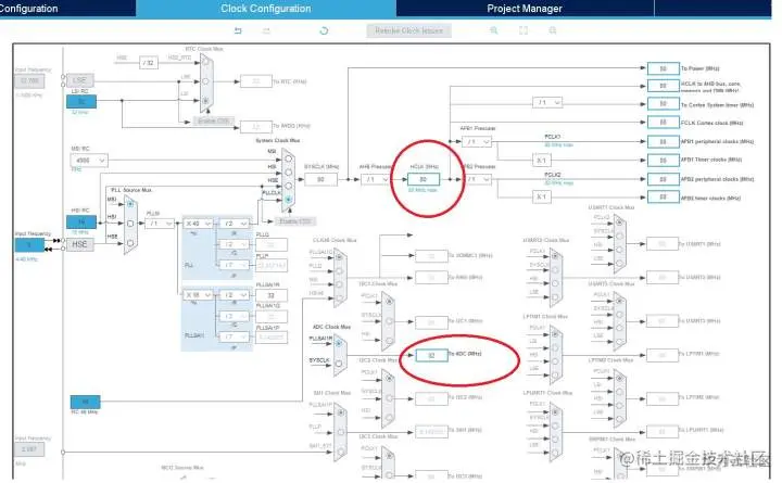 STM32L431RCT6系统时钟最大可以为80MHz,我们配置到最大即可