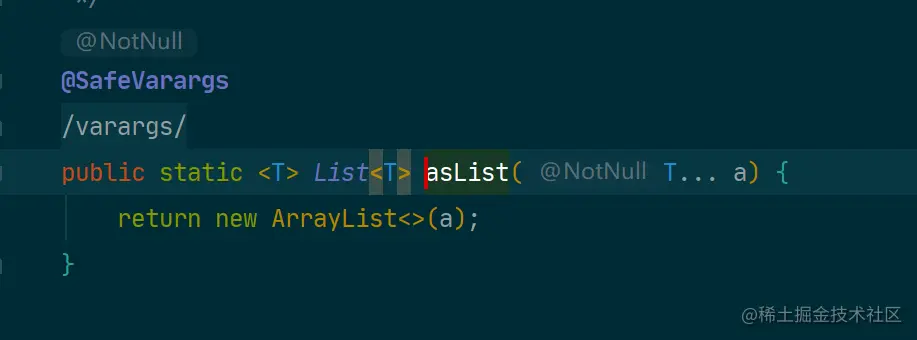 如果打开asList方法我们会发现它调用了ArrayList的构造方法来初始化该List对象: