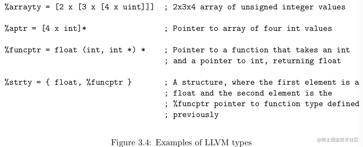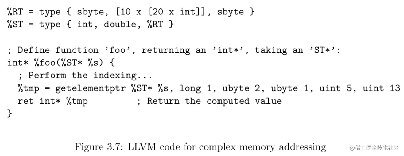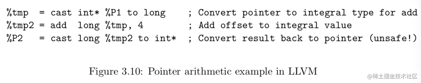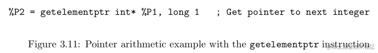 在最后的语句中的指针算术,可编译为图 3.10 的 LLVM 代码: