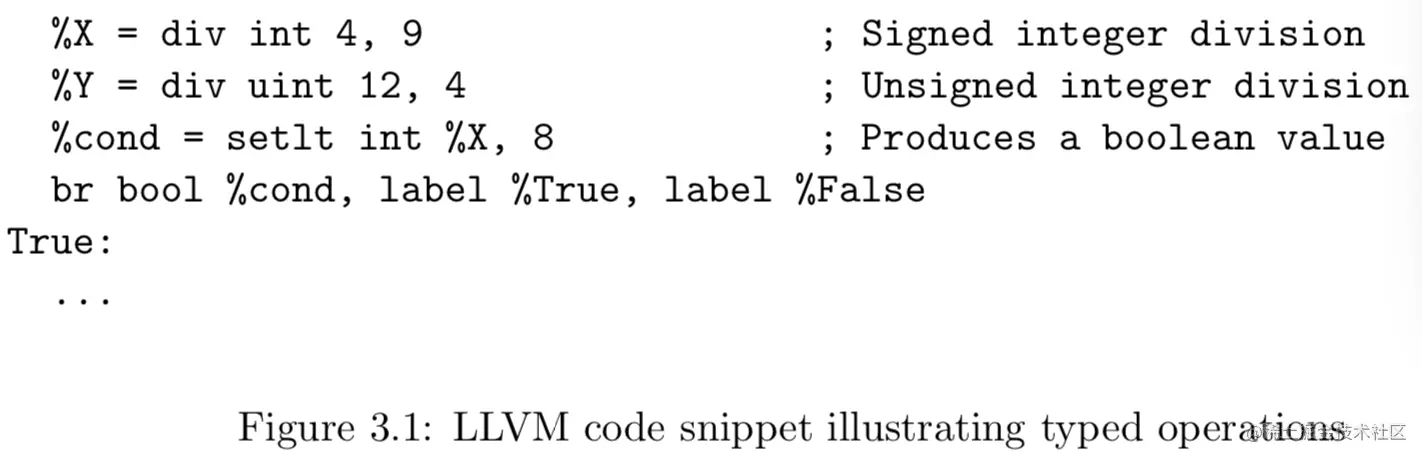 除了简单的二操作数指令(binary instructions 二操作数 VS 二进制**),一些指令接收 0 个、3 个或是可变数量的操作数,**如 call 指令、和用来以 SSA 形式表现代码的 phi 指令。