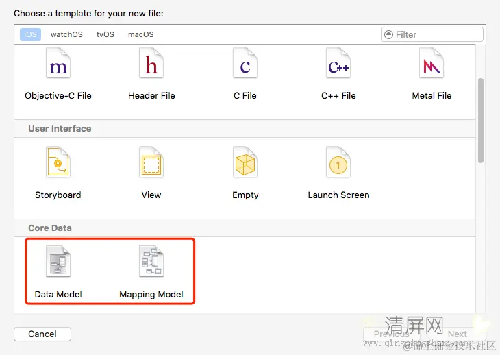 最近要用到CoreData,忽然发现Xcode8新建文件Core Data一栏只剩了两个,NSManageObject subclass不翼而飞,如下图