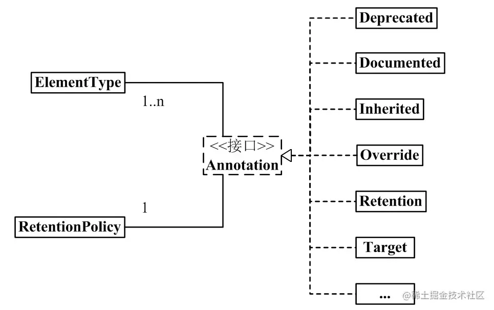 使用 @interface 定义注解时,意味着它实现了 java.lang.annotation.Annotation 接口,即该注解就是一个Annotation。