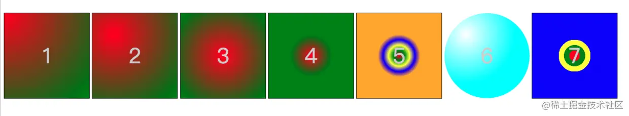 background-image: radial-gradient(50px at center, red, green);