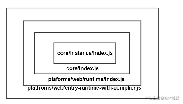 通过这个关系我们能够看到我们实际使用的Vue对象是经过了层层包装导出的,下面我们在分别看一下每个文件中都对Vue对象做了什么封装