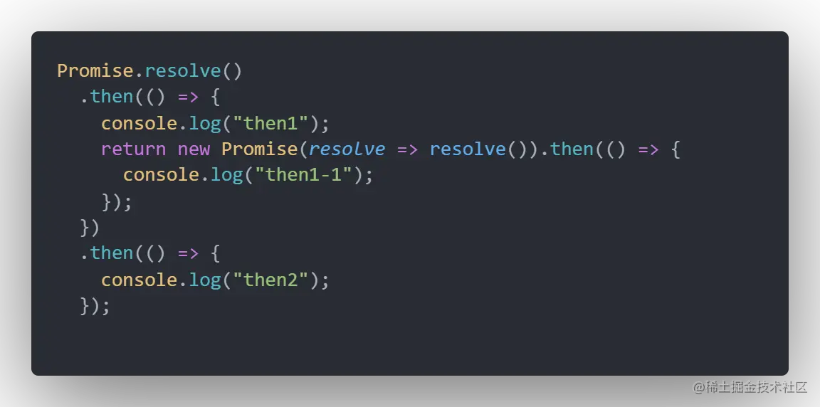 输出顺序变成了 then1 -> then2 -> then1-1。